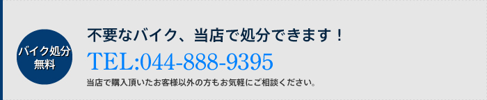 事故車や再販売が難しいもの、不要なバイクのある方、当店で引取ります。